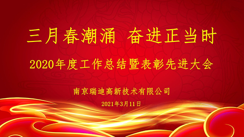 2021年3月11日上午,公司在和县生产基地召开2020年度工作总结暨表彰大会。南京水利科学研究院戴济群副院长、瑞迪科技集团公司唐云清董事长通过视频在线出席会议。 祝烨然副总经理总结汇报了公司2020年度在加强组织建设、打造转化平台、完成基地搬迁、加快产能释放、强化内部管控等方面取得的成绩。随后,会议对公司先进部门和优秀员工进行颁奖表彰。 徐志峰董事长对公司2020年在各项工作中取得的成绩表示肯定,并就2021年工作要点进行了部署:一是保增长,释放产能,要全员营销,带队出访,把握好如今的大好局面;二是强素质,坚持培训,助推能力素质提升,建立人才梯队;三是做好十四五规划,并创新改革制度,希望大家建言献策,将公司打造成南科院的新材料基地;四是风险防控,要学会明辨风险,要有底线思维。 集团公司唐云清董事长指出公司要在2021年实现最大跨越,就必须要提高营销能力,扩大公司在重大交通工程、水电工程的影响力,利用好南科院的牌子;要加强研发和创新;要强化党建、企业文化建设和制度体系建设。 戴济群副院长充分肯定了2020年公司整体变化和所取得的成绩。希望公司统一思想,统一认识,克服困难,在接下来的工作中找出研发、生产和销售等各环节存在的短板,并落实应对措施;要保质保量完成各项任务,强化安全意识;要研发、引进新产品,拓展市场。
